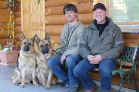 Marcus Anschütz "Rudelchef" trotz spaßtischer Lähmung möglich.     Durch einen guten Freund, der fast täglich in die Fleischerei meiner Eltern in Scheibe - Alsbach (Thüringen) zum Frühstück kommt, wurde ich vor einem halben Jahr auf die Hundeschule "Waldblick" in Olbernhau aufmerksam. In zahlreichen Gesprächen schwärmte er von Falko Zoll`s Hundeschule, seinen eigenen Hunden und deren Erziehung.  Ich selbst bin 32 Jahre jung, ein sehr großer Tierfreund und Hundeliebhaber. Seit meiner frühesten Kindheit wuchs ich in meiner Familie gemeinsam mit Hunden und vielen anderen Tierarten auf. Meinen ersten Bussard bekam ich mit neun Jahren, dazu kamen dann einige Elstern und Krähen, die ich gemeinsam mit meinen Eltern groß zog. Sie wurden von uns liebevoll frei gehalten, bis sie den natürlichen Weg verfolgten und sich anderen Vögeln anschlossen. All diese Vögel waren aus den Nestern gefallen und hätten im normalen Leben keine Überlebenschance gehabt.  Mit 18 Jahren kaufte ich mir dann meinen ersten Schäferhund. Es war an einem Heiligabend 1997 und der Welpe war genau acht Wochen alt.  Da ich seit meiner Geburt eine rechtsseitige spaßtische Lähmung verbunden mit darauf zurückzuführenden Hüftproblemen habe, verlief mein Leben nicht ganz problemlos. In den letzten zehn Jahren musste ich große Schmerzen ertragen und diese verarbeiten.  Mein damaliger Schäferhund hat mir sehr über diese schwere Zeit hinweg geholfen. Tiere sind einem in noch so schwierigen Zeiten immer treu, was ich von 80 % der heutigen Menschen nicht immer behaupten kann.  Nie werde ich vergessen, welch treuer Freund und Wegbegleiter dies für mich war.  Mit meinen zwei neuen Schäferhunden, die Hündin "Alica" zweieinhalb Jahre und der Rüde "Charly" zwei Jahre alt, habe ich mir eine riesen Verantwortung ins Leben geholt. Sie sind "keine Frage" genauso treu und lieb, wie mein erster Hund. Doch dadurch dass sie zu zweit sind, muss ich im täglichen Leben einmal mehr beweisen, dass ich der Rudelchef bin.  Aus diesem Grund bin ich sehr dankbar, dass ich Falko Zoll und seine Hundeschule "Waldblick" kennen gelernt habe. Durch Falko wurde ich in einem Intensivkurs geschult, mich gegenüber meinen Hunden anders und viel konsequenter zu behaupten. Mir gelang es endlich, mich bei meinen zwei Schäferhunden richtig durch zu setzen und ich habe mir die Führungsrolle schwer erarbeiten müssen.  Da ich drei Stunden von Falko entfernt wohne, war für mich das letzte halbe Jahr nicht ganz einfach. Doch durch sehr viel telefonische Motivation und aufbauende Worte meines Hundetrainers, gelang es mir auch zu Hause bereits erlerntes Wissen und Können zu festigen. Darauf bin ich mächtig stolz, denn meine zwei Schäferhunde sind kein einfaches Gespann.  Ich werde in Zukunft die Möglichkeit nutzen in der Hundeschule "Waldblick" die bisher erlernten Fähigkeiten meiner Hunde vor zu zeigen und diese noch zu verbessern.  Mein Wunsch für meine Zukunft ist es, eines Tages eine kleine Existenz auf der Basis Hundetrainer mit einer kleinen Hundezucht auf zu bauen.  Falko hat zu mir gesagt: "Auch wenn der Weg bis dahin noch sehr steinig ist, auch aus Steinen, die man in den Weg gelegt bekommt, kann man sich etwas bauen und wohl das Wichtigste, was ich mir merken sollte, mache nie den zweiten vor dem ersten Schritt.        DAS GEHT MEISTENS SCHIEF!"  Marcus Anschütz Hundeschule „Waldblick“