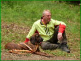 Ronja wird in nächster Zeit in ihren wohlverdienten Ruhestand gehen. Schweißhündin „Ronja vom Herschdorfer Tal“Seit Mai 2013 bin ich im Besitz der Hannoverschen Schweißhündin „Ronja vom Herschdorfer Tal“, die am 06. September 2014 in Grafenwöhr ihre Schweißhundeprüfung / VP erfolgreich abgeschlossen hat. Ronja steht ab sofort für anfallende Nachsuchen zur Verfügung. Um die Nachsuchen gut zu planen, gebe ich folgende Tipps an Jäger:-Anschuss verbrechen (Nicht nachgehen)-Anruf: 037363/7816 oder 0174/6990474-Treffpunkt vereinbaren-Absprache NachsucheDer Erfolg einer Nachsuche hängt vom richtigen Verhalten nach dem Schuss oder nach einem Verkehrsunfall ab. Ich wünsche eine gute Zusammenarbeit und Waidmanns heilFalko ZollSchweißarbeit ist aktiver Tierschutz!
